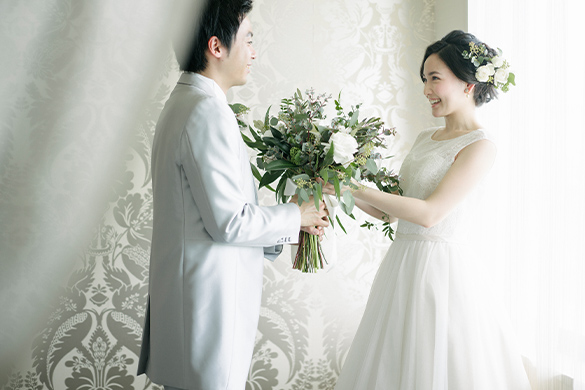 お支度を整えた新郎さま、新婦さまのお姿を